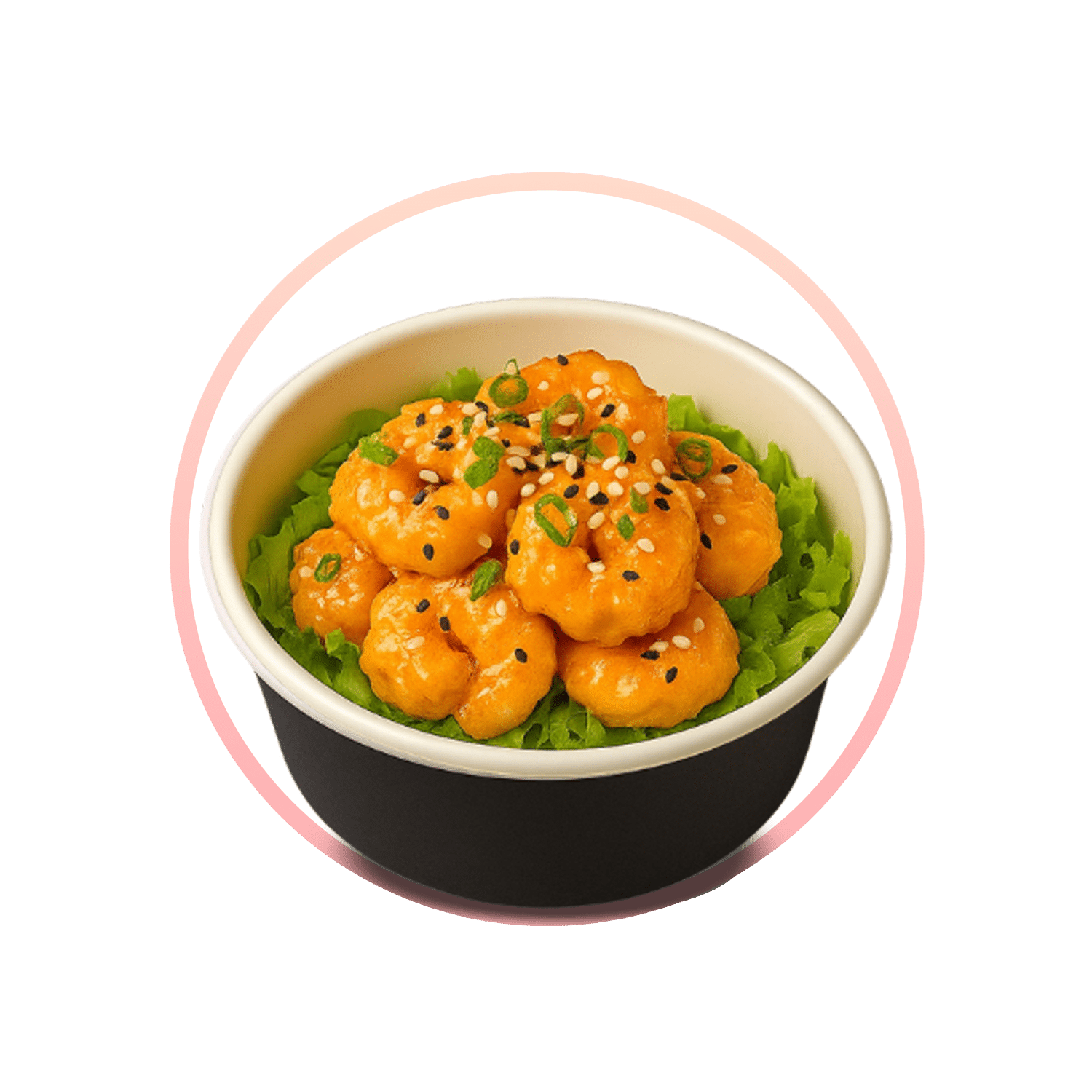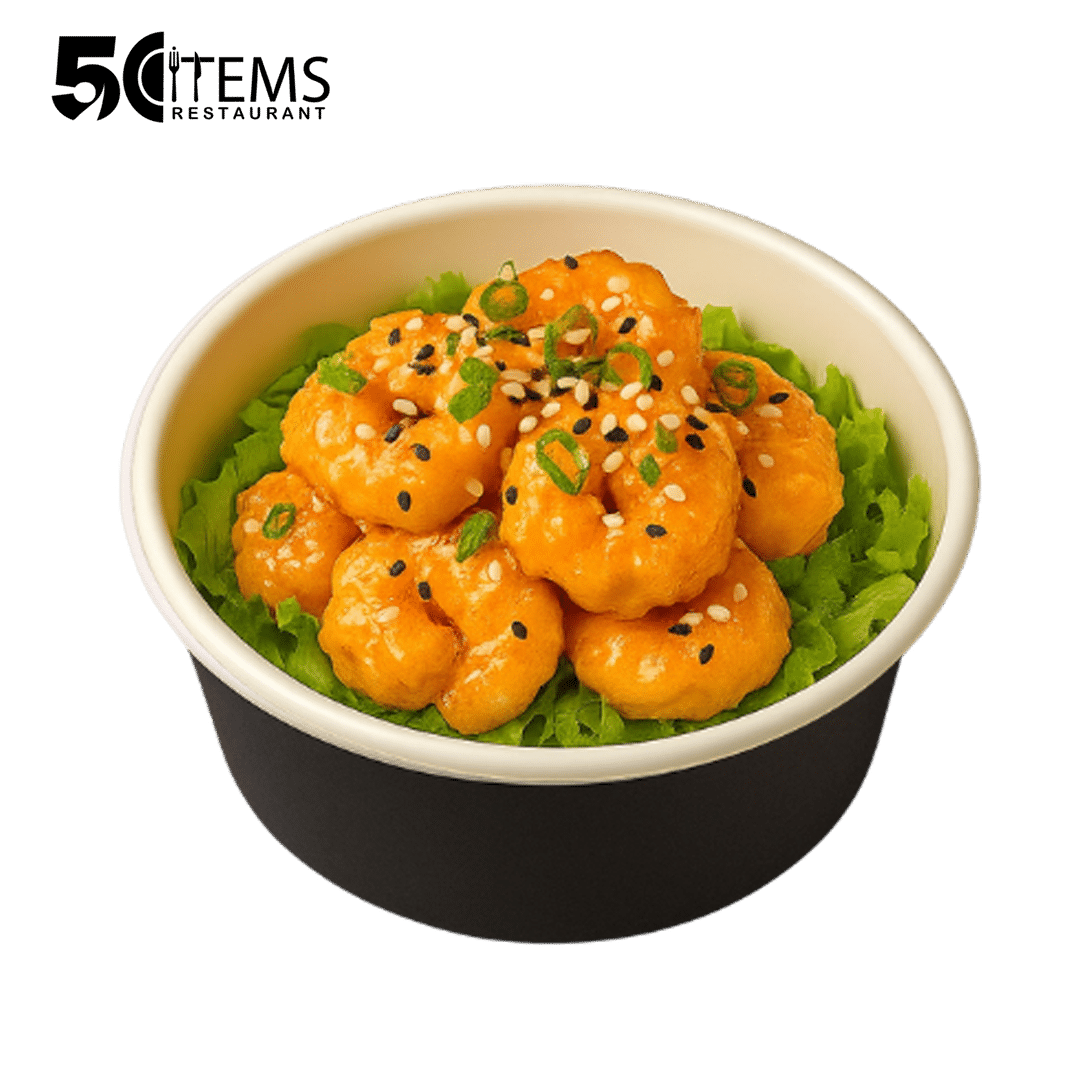 روبيان مقلي مغطّى بصوص الديناميت، حراق وناعم فـ نفس الوقت.روبيان مقلي بقرشة ذهبية، مغطّى بصوص الديناميت الكريمي الحار – مزيج ناعم وناري يضرب كل حواسك. طبق يفتح الشهية ويخطف الأضواء!