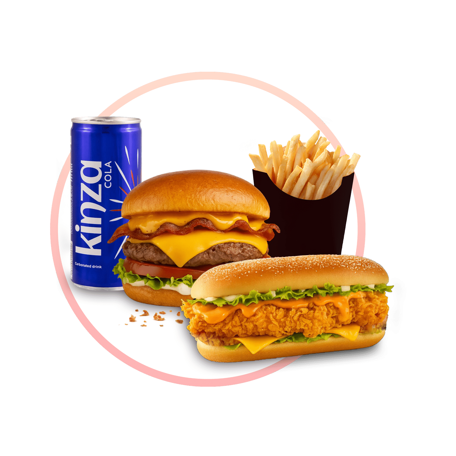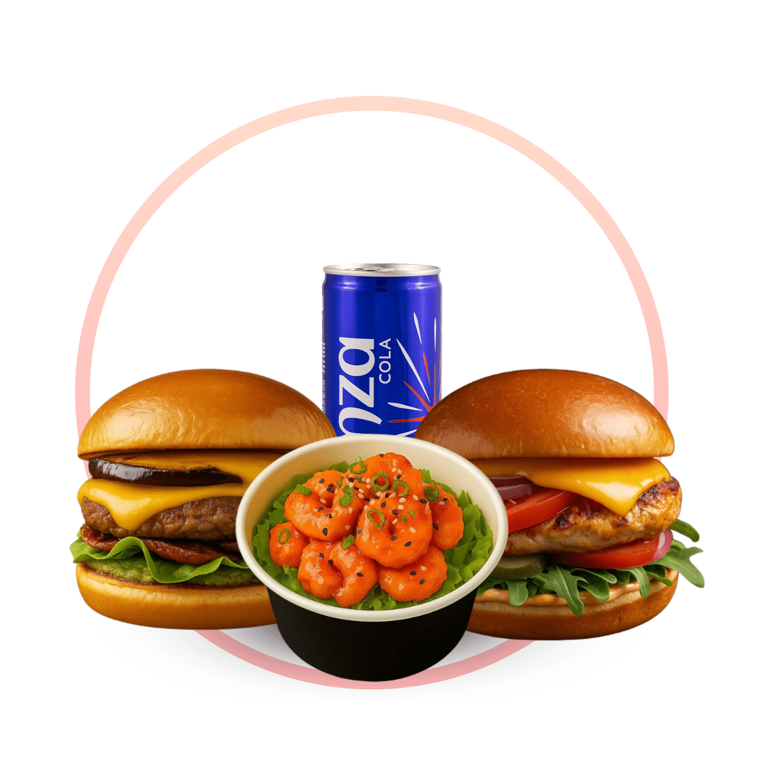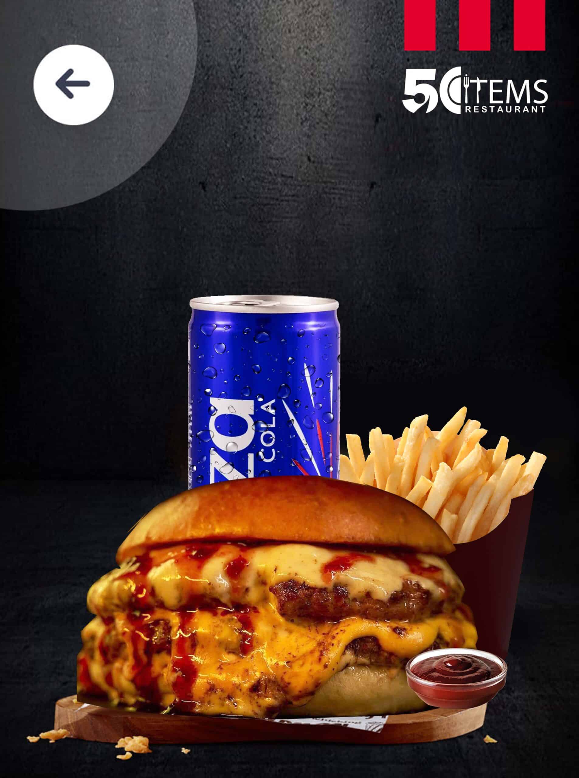 برجر لحم بيف مع صوص خاص ونكهة قوية، يميزّه القرمشة اللي تقولك من أول لقمة: “أنا غير!”، شريحة لحم مشوي، خبز طري، ومكونات متوازنة بين الطعم الغني والقرمشة المميزة. الوجبة تشمل بطاطا مقرمشة ومشروب بارد لتجربة كاملة ما تنساها.