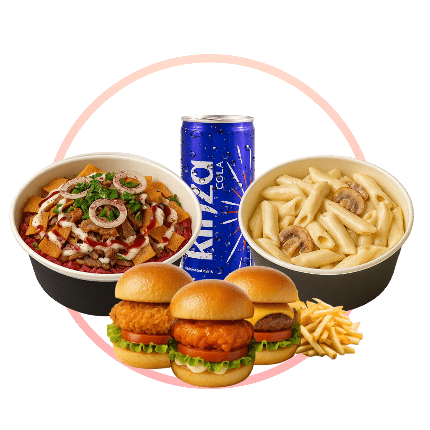بطاطا مقلية مقرمشة، باستربس دياي ذهبية، وصوصات خاصة تفجّر النكهة! وجبة خفيفة، غنية، ونكهتها ترقّصك… وانت ساكت!