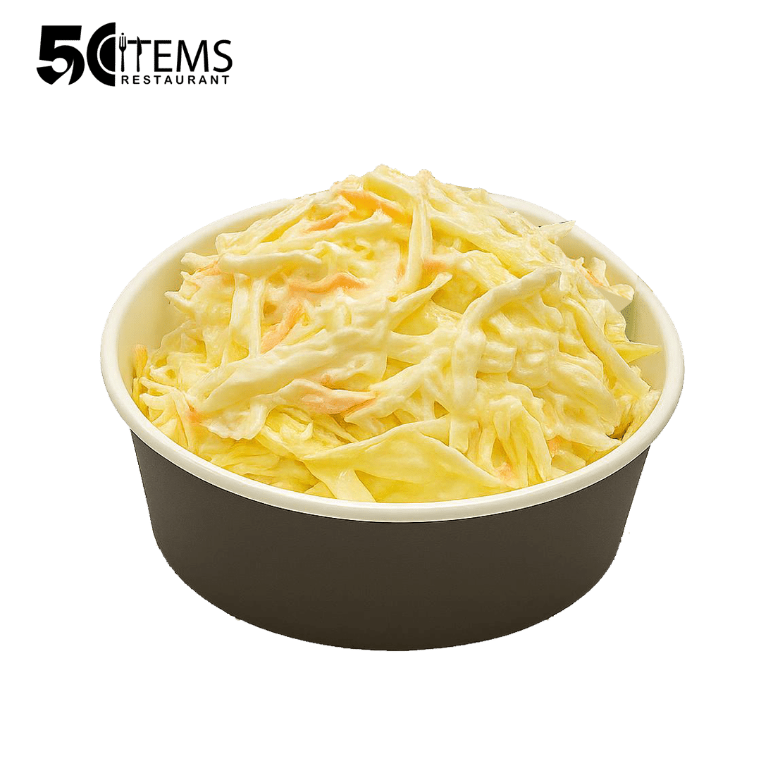 كرنب أبيض وأحمر مقطع ناعم، مع جزر طازج وصوص مايونيز كريمي يبرد القلب ويكسر الدسامة، سلطة جانبية كلاسيكية تنعش أي وجبة.
