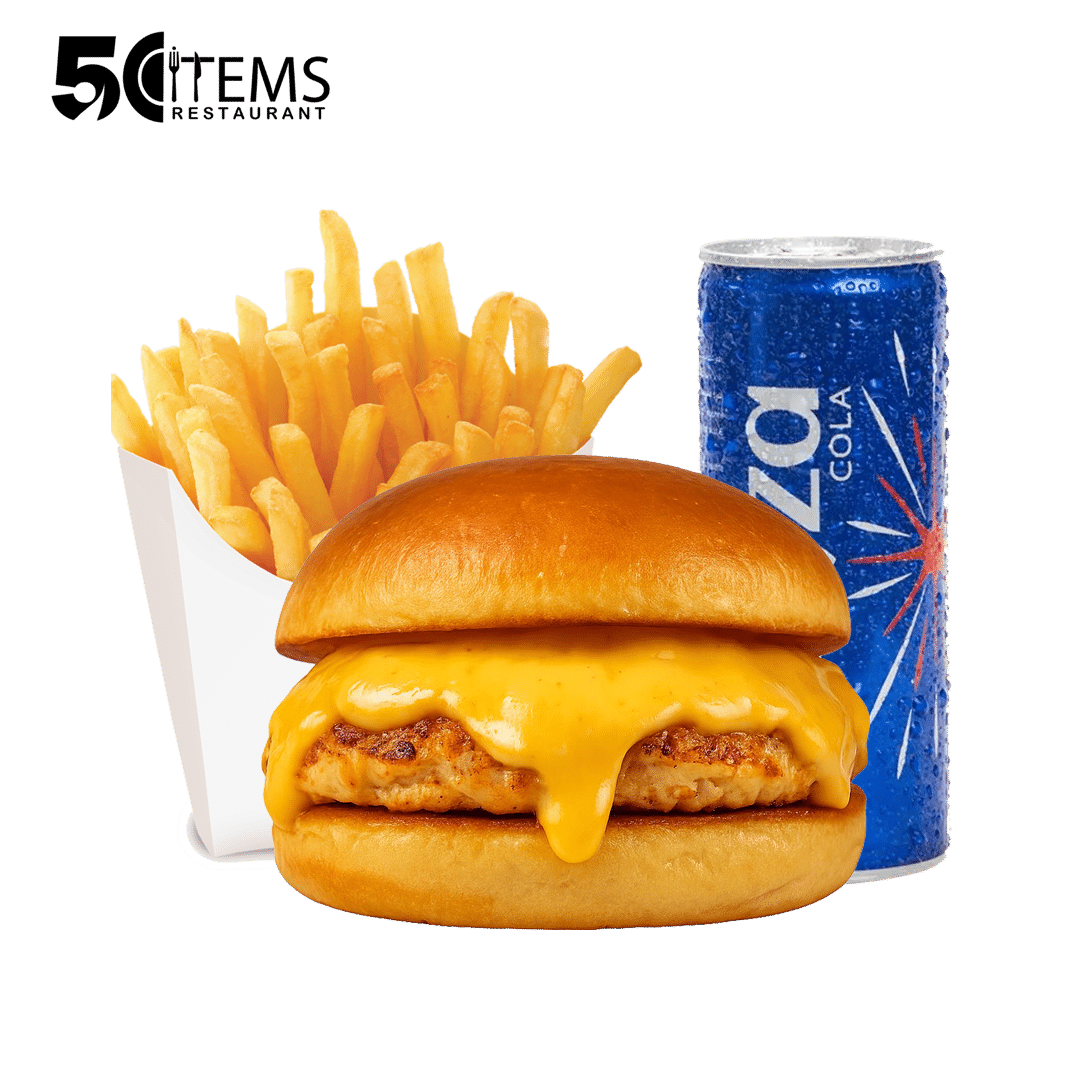 سماش تشيكن برجر محضر من قطعة دجاج طازجة للحفاظ على العصارة والطراوة. مغطى بطبقة جبنة ذائبة لذيذة، مع خس مقرمش، شرائح طماطم طازجة، وخبز برجر طري محمص. أفضل برجر دجاج سماش لعشاق الطعم العصري الذي يجمع بين البساطة والنكهة القوية في كل لقمة.