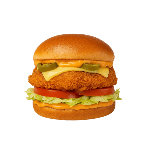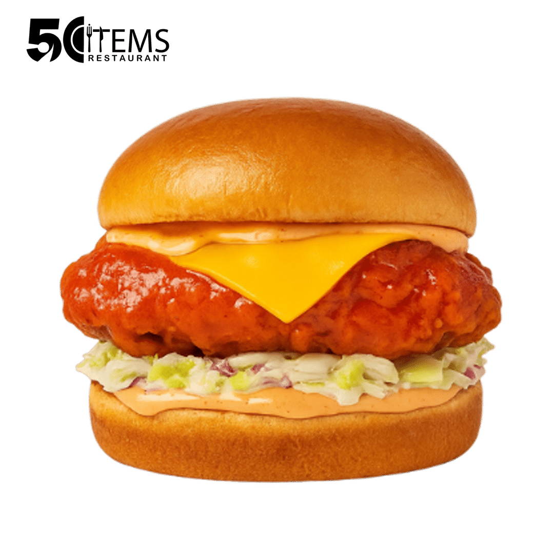 برجر دياي مقرمش غرقان بصوص البوم الغني والناري! نكهة جريئة، حارة ولذيذة تنفجر في فمك مع كل لقمة. يقدم في خبز ناعم بدون سمسم، مع مزيج مثالي من القرمشة والطعم القوي لعشاق الصوص الثقيل.