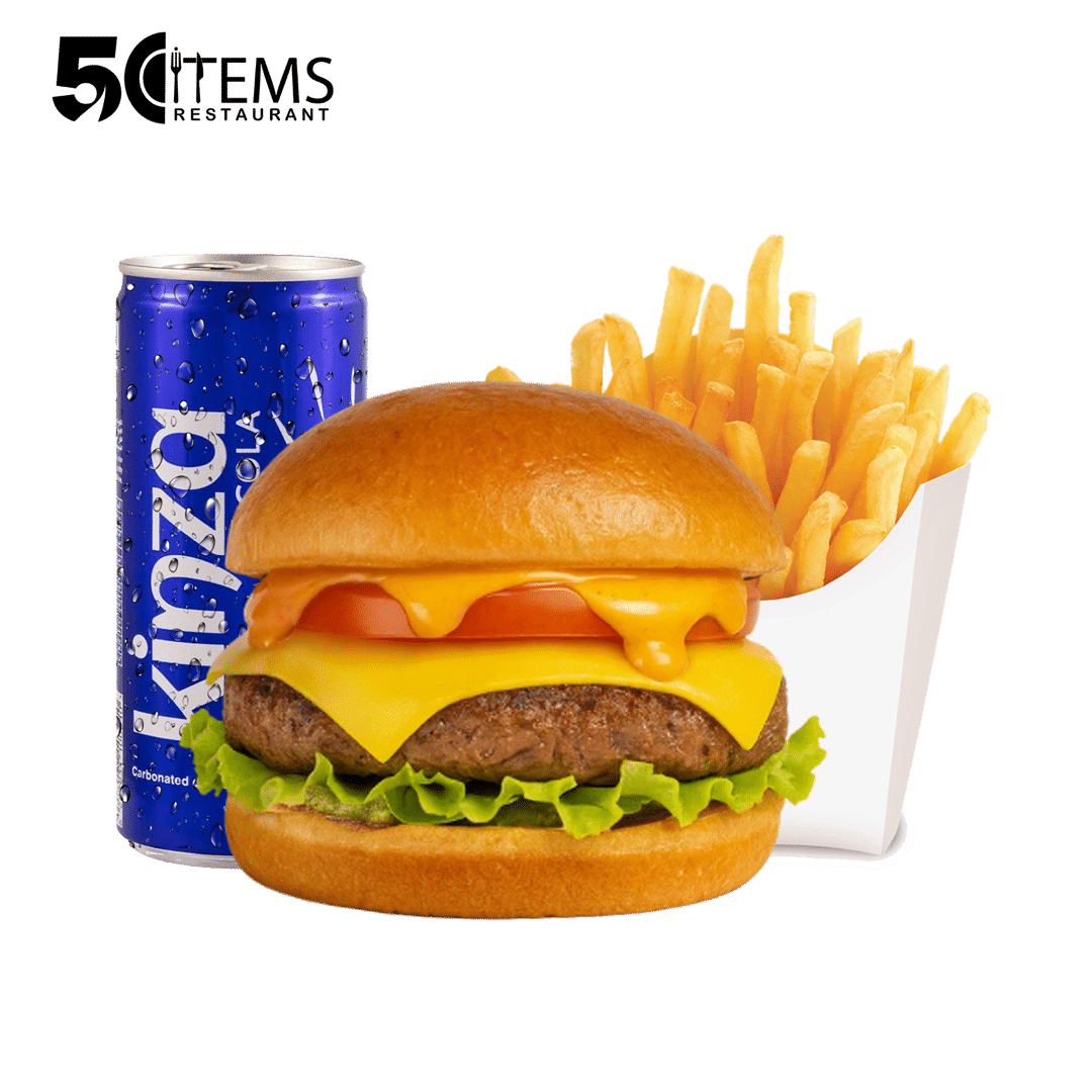 برجر لحم بيف مشوي على النار، مع شريحة جبنة سايحة، خس طازج، وطماطم مقطعة بعناية، وكل ده بصوص كلاسيكي غني يوازن النكهة ويخلي كل لقمة كاملة. وجبة تشمل بطاطا مقرمشة ومشروب بارد لرضا مضمون.