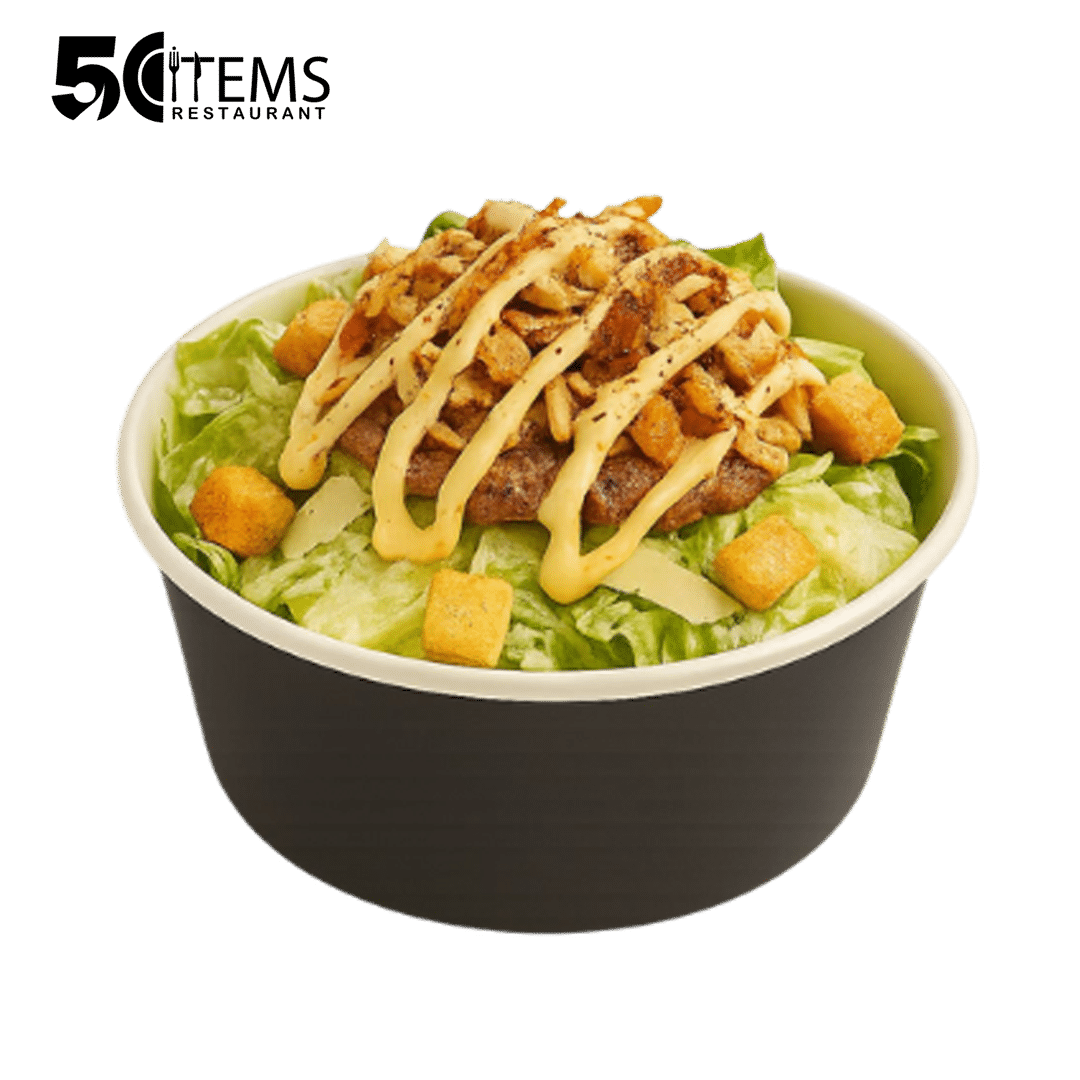 خس كابوتشا طازج مع توست محمّص، وجبنة برميزان مبشورة، يكتمل الطعم مع شاورما دياي من السيخ وصوص السيزر الكريمي اللي يغرق النكهة ويخليها غير.