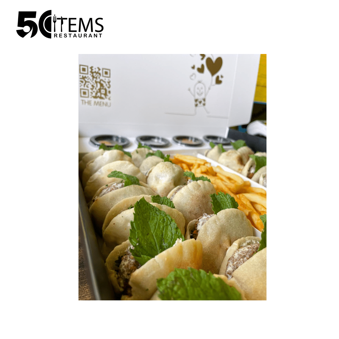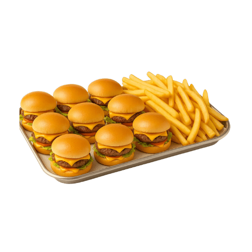 بوكس يحتوي على 10 قطع من ميني برجر اللحم الطازج، مع جبنة وصوص مميز، حجم صغير يناسب التجمعات والوجبات الخفيفة، طعم غني وممتع في كل قضمة.